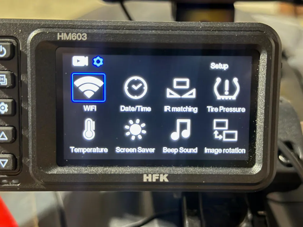 HFK HM603 motorcycle camera equipped with tire pressure function, once HFK tire pressure monitoring system matched with the main host, the tire temperature and pressure values are displayed in real-time on the recorder. You can set the tire pressure limit and get alarm for safety riding.