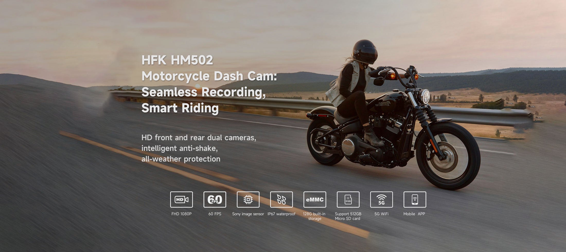 HFK HM502 Motorcycle Dash Cam – 1080P Ultra HD Dual Lens with GPS and WiFi