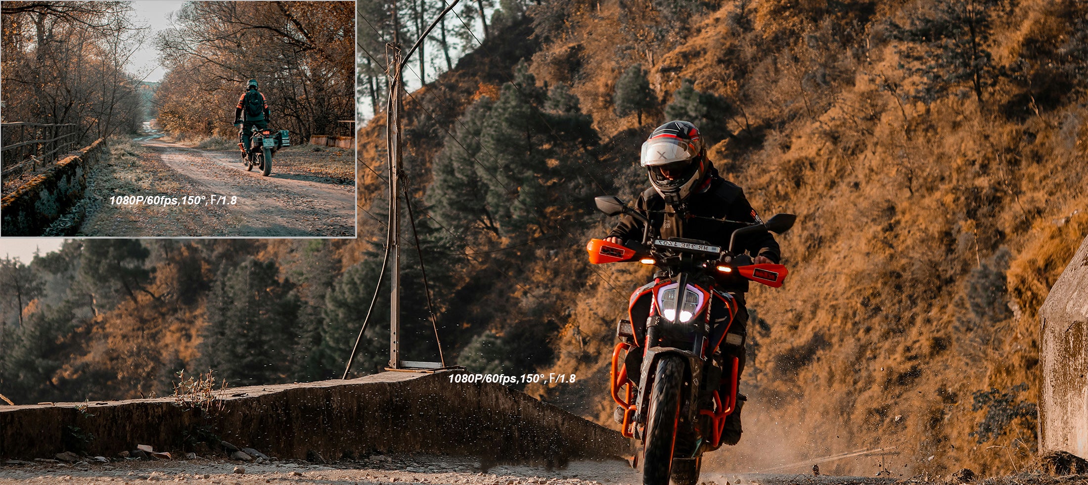 HFK camera for motorcycle built-in 128GB eMMC storage which is more stable, more erasable times, faster read&write speeds and a longer service life. Supports up to 512GB micro SD card (Not Include). When the memory card is full, the new video will automatically overwrite the oldest video. Note: Locked video will not be over written, if too many locked video files will occupy storage space, please clean it regularly.