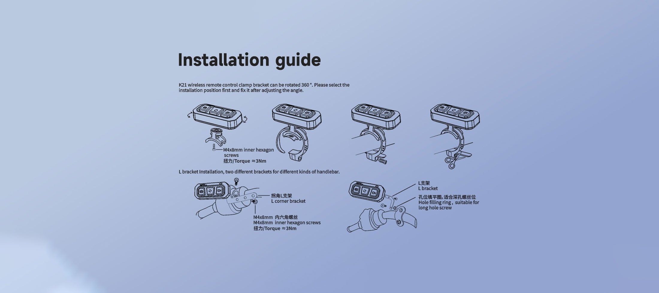 - Note: K21 wireless remote controller only compatible with HFK HM201、HM603、HM702、HM801、HM801P motorcycle dash cam. Please make sure whether it is suitable for the recorder model you bought.